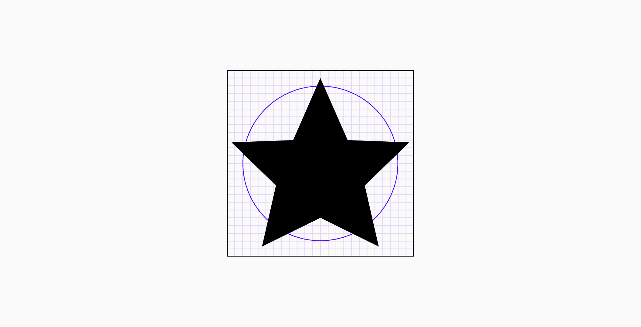 A core goal is to make every icon in a set feel equal on the eyes, even if the pixel dimensions differ. For icons with unusual shapes or a lot of white space, we need to adjust them optically so they look balanced. In this case, it means making the star icon slightly larger than the circular keyline to make up for the negative space between its points, giving it an equal visual presence