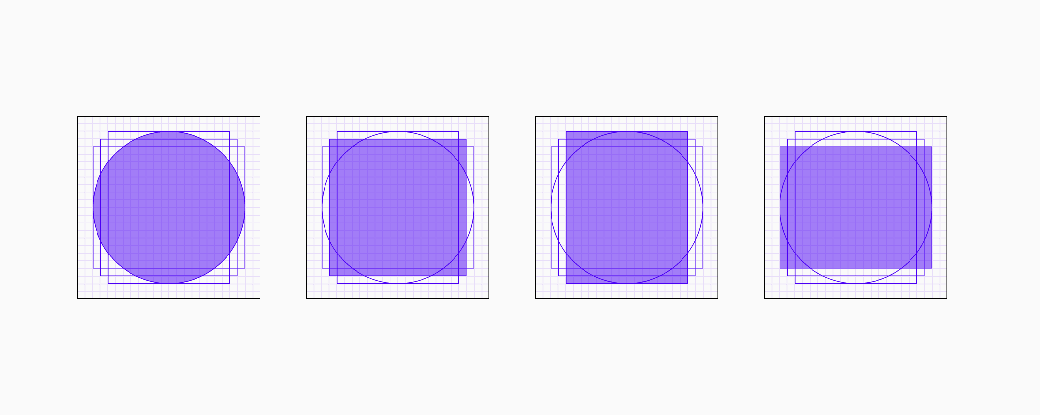 Keylines, also known as key shapes, are fundamental geometric guides that suggest the maximum boundaries for different icon shapes. They are crucial for achieving optical balance and consistency across an icon set. Icons can generally be categorized into 4 shapes, circle, square, long rectangle and wide rectangle.